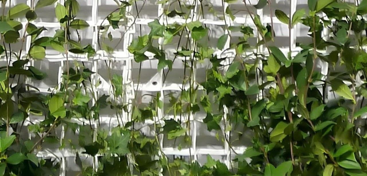 Eine preiswerte Fassadenbegrünung nutzt recycelte PVC-Rankgitter mit Abmessungen von 57×57 cm und einer Stärke von 1,8 cm als stabile Rankhilfe. Kletterpflanzen wie Clematis oder Geißblatt werden ohne komplizierte Bewässerungssysteme in Pflanztrögen angebracht und bewirken im Sommer eine natürliche Verdunstungskälte. Im Winter wirkt das grüne Blattwerk als Wärmedämmung. Zusätzlich bindet die Bepflanzung CO2, verschönert Fassaden und schafft Lebensräume für Insekten, Spinnen und Vögeln. Die Montage erfolgt einfach per Dübelung an Wand.