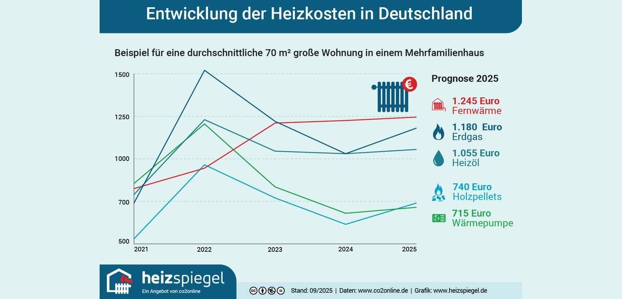 Heizöl- und Fernwärmepreise steigen 2025 laut Heizspiegel moderat an